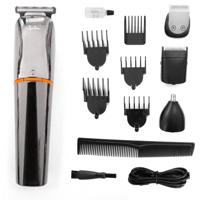 O Jata JBCP3305 é o aparador multifunções ideal para quem procura máxima versatilidade e precisão no cuidado pessoal. Com 9 acessórios intercambiáveis, adapta-se facilmente ao corte de cabelo, barba, depilação corporal e zonas delicadas, oferecendo resultados profissionais em casa ou no duche.