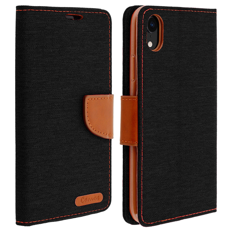 • Avizar Canvas Capa Livro Têxtil Preta/Castanha para Apple iPhone XR