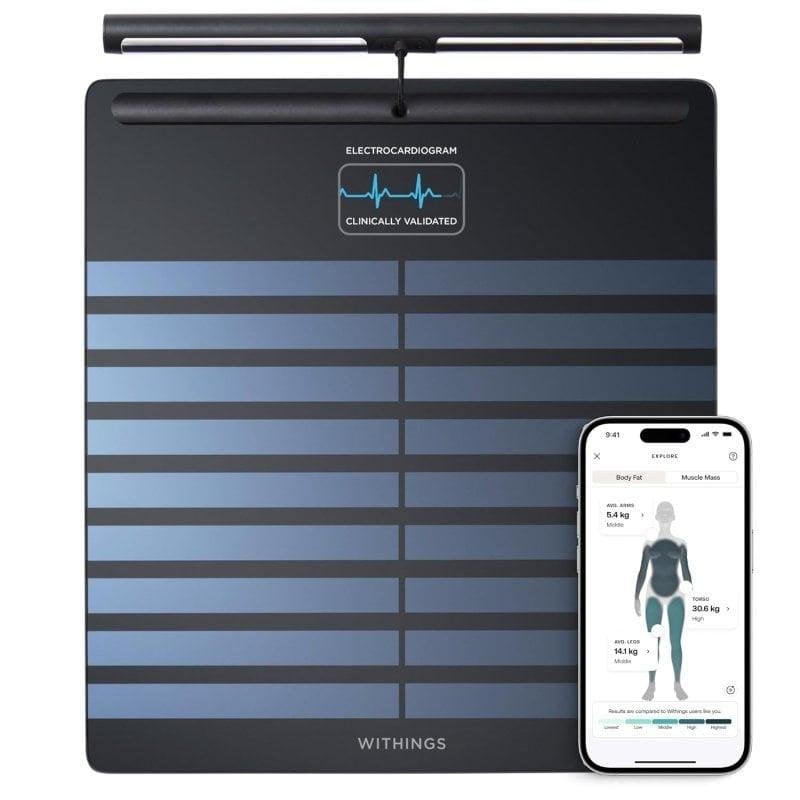 Controle total da sua saúde em casa: a Withings Body Scan oferece análise corporal avançada, ECG clínico e conectividade inteligente para monitorização precisa e personalizada.