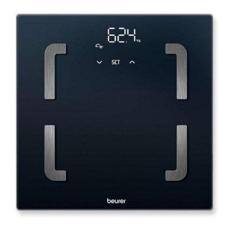 Controle o seu peso e saúde com precisão usando a balança digital Beurer de vidro preto, ideal para monitorização diária e acompanhamento de objetivos de bem-estar em casa.