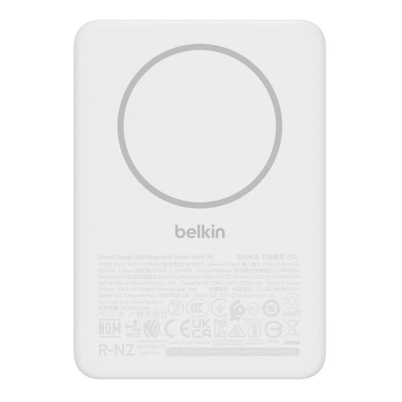 Bateria externa Belkin BPD010hqWH 5000 mAh magnética sem fios 7,5 W branca
