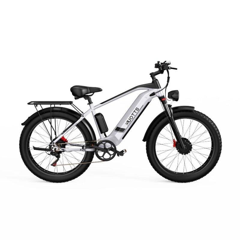 Bicicleta Elétrica DUOTTS F26 1500W Bateria 840Wh 50km Prata-Branco Pneus 26x4.0