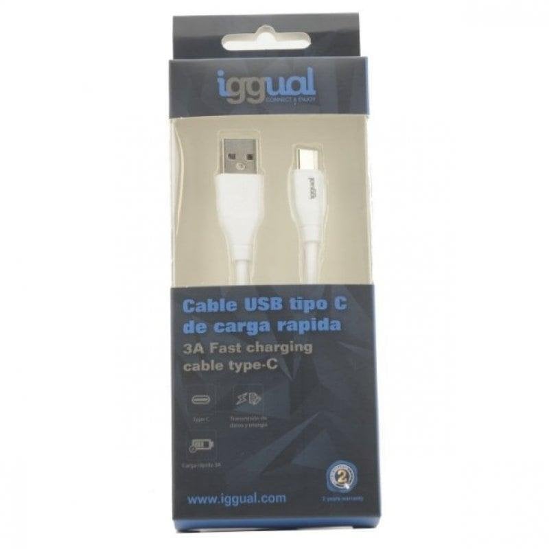 Cabo USB iggual Q3.0 USB-A para USB-C 1m Branco Carregamento Rápido