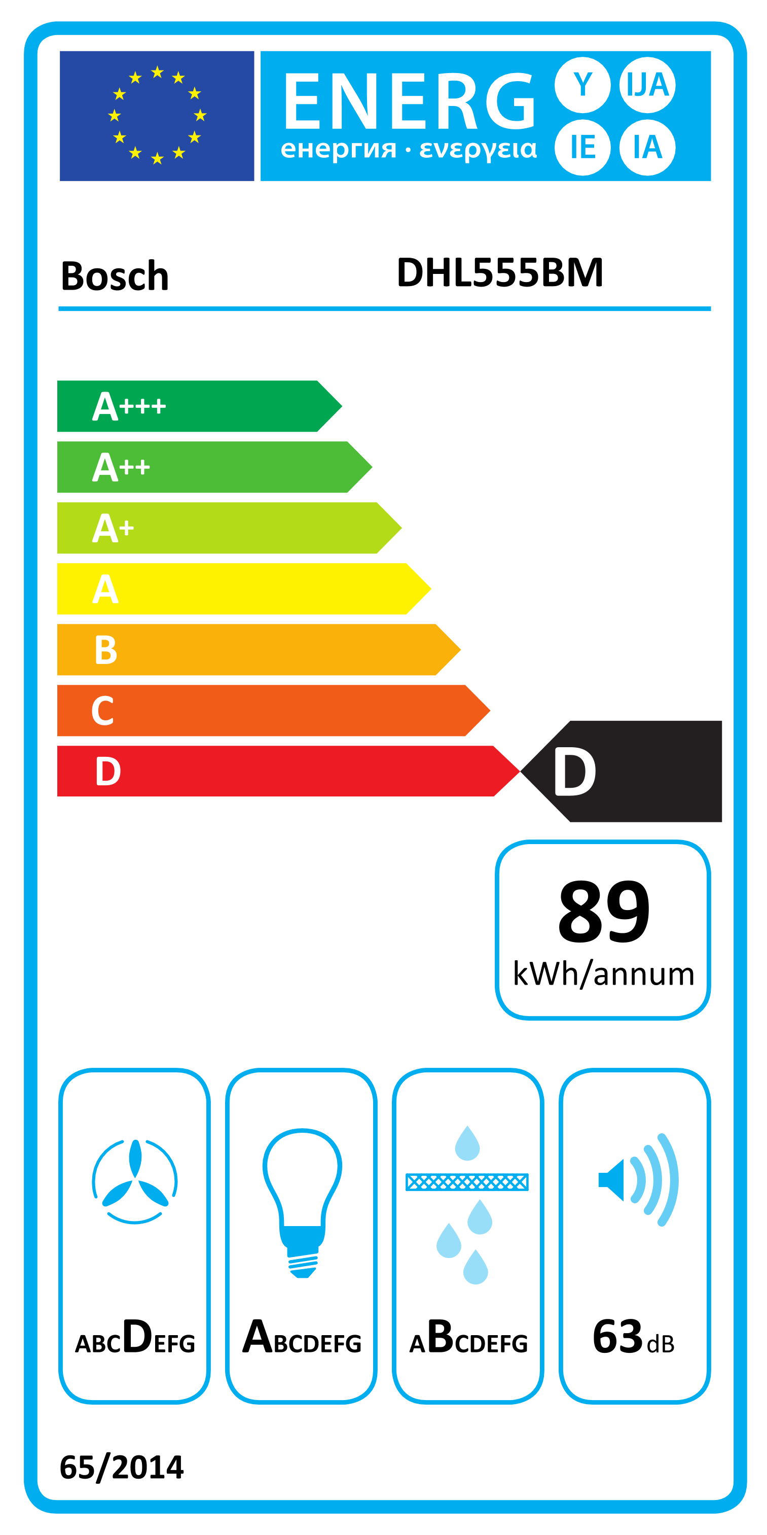 Tem classe energética D e consumo anual estimado em 89,4 kWh, equilibrando eficiência e desempenho.