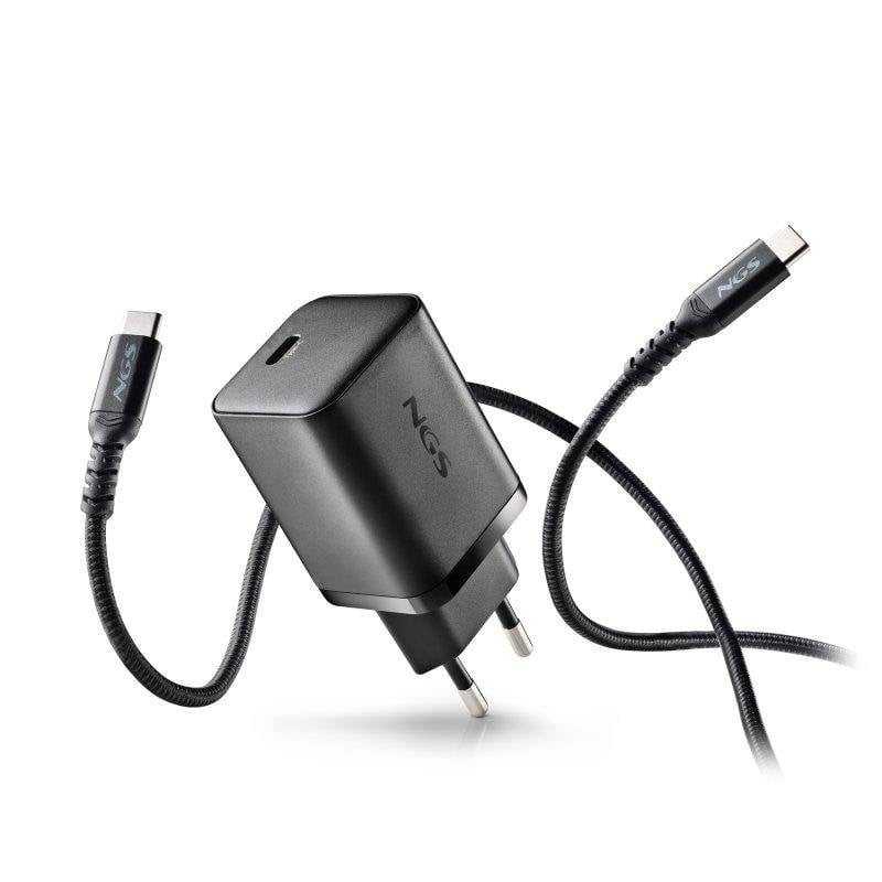 Carregador NGS Bud 65W-C USB-C GaN com Cabo 1,5 m Carregamento Rápido Preto