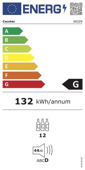 Eficiência energética e baixo ruído. A classificação energética G representa uma melhoria face ao modelo anterior, minimizando o consumo. O compressor de funcionamento silencioso (apenas 44 dB) permite integrar a cave em qualquer espaço doméstico ou profissional.