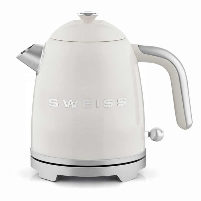 Dê um toque de elegância à sua cozinha com a chaleira vintage SWEISS KTS8. Com o seu design requintado e capacidade de 1 litro, oferece um aquecimento rápido e eficiente, além de se tornar um verdadeiro elemento decorativo. Fabricada em aço inoxidável de alta qualidade, a KTS8 combina durabilidade e estilo para se integrar perfeitamente no seu dia a dia. Seja para chá, café ou infusões, esta chaleira satisfaz todas as suas necessidades com simplicidade e desempenho. A sua potência de 1000W permite um aquecimento rápido, garantindo o máximo conforto em cada utilização. Escolha a chaleira vintage SWEISS KTS8: uma escolha elegante para o máximo conforto. Para um estilo vintage harmonioso, a chaleira KTS8 está disponível com a torradeira GRS8 a condizer.