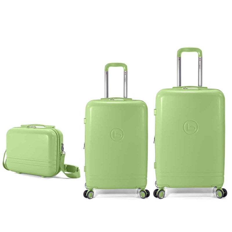 Conjunto de malas Benzi Bz5827v-60/50, composto por 2 malas rígidas expansíveis em ABS e necessaire, tamanho cabine 50cm e médio 60cm, 4 rodas duplas, fechadura de combinação, cor verde.