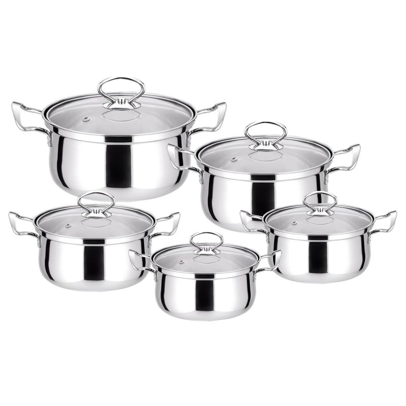 Conjunto de panelas de aço inoxidável Klack de 10 peças para todos os tipos de cozinhas