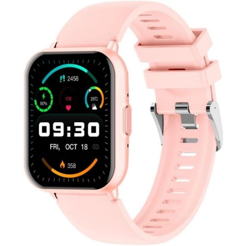 - Design elegante com correia de silicone rosa
