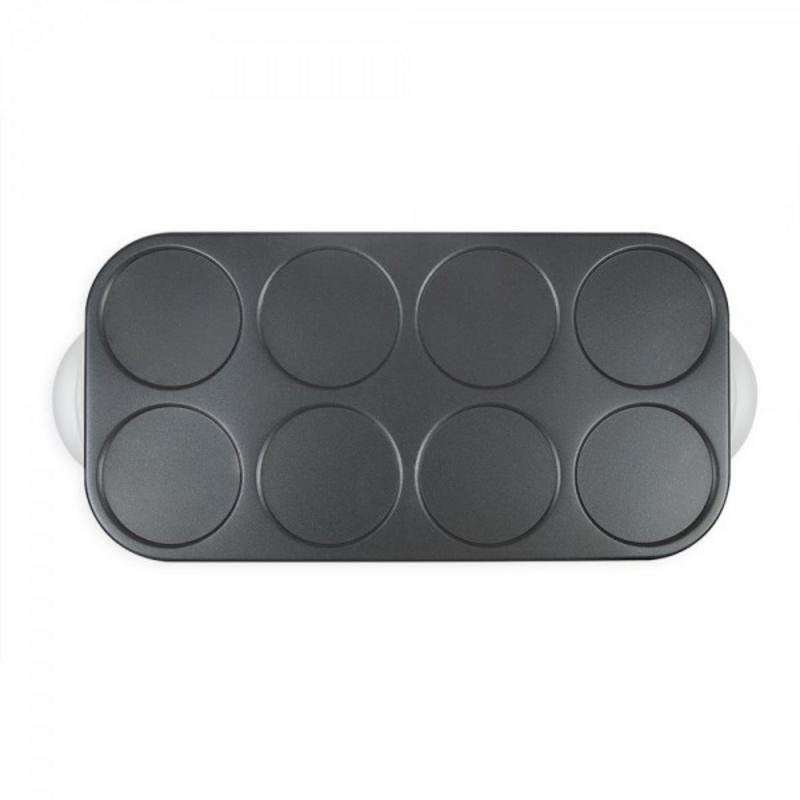 Sim, pode ser utilizada para pequenas panquecas, blinis ou omeletes, graças à superfície antiaderente e ao controlo preciso de temperatura.
