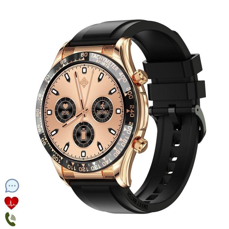O Dam Electronics E18 Pro destaca-se pelo seu design robusto e elegante, adequado para utilizadores que exigem funcionalidades avançadas num smartwatch competitivo. A sua caixa selada com certificação IP67 oferece resistência ideal para um uso diário ativo (não submersível), enquanto o visor tátil circular de 1.32" e definição 360x360px garante leitura clara em ambientes luminosos. Desenvolvido para quem exige monitorização abrangente da saúde, integra monitor de ritmo cardíaco, tensão arterial, oxigénio no sangue (SpO2), monitorização do sono, contador de passos, gasto calórico e lembrete anti-sedentarismo.