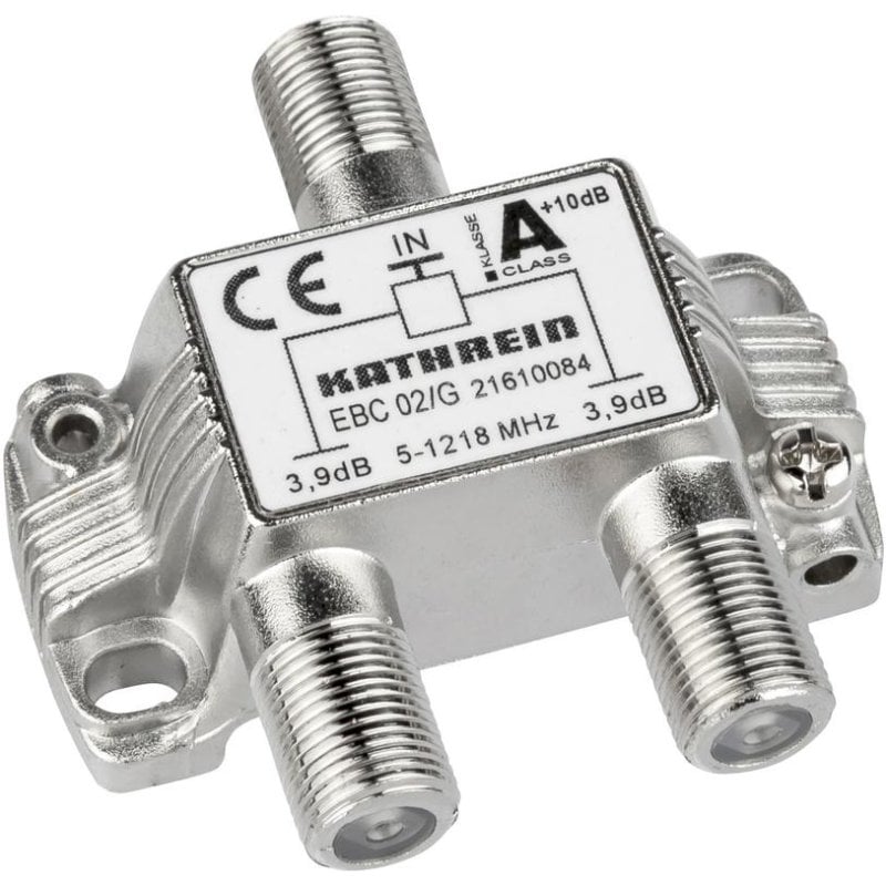 Desempenho profissional. O divisor Kathrein EBC 02/G garante separação de sinal confiável para instalações de TV, satélite ou redes de cabo, com impedância de 75 Ohm e ampla faixa de frequência de 5 a 1218 MHz. Ideal para técnicos e integradores, proporciona qualidade de sinal superior mesmo em ambientes exigentes.