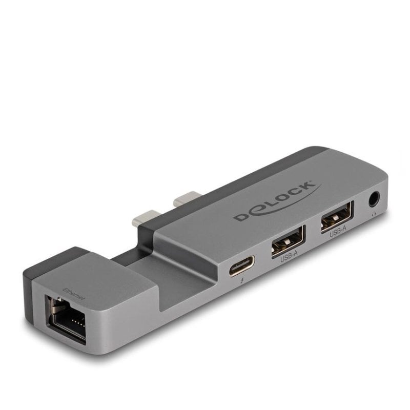 Transforme o seu MacBook Pro ou Air numa central de produtividade e conectividade extrema com a DeLock 87757, a estação de acoplamento portátil com Thunderbolt 4 e suporte até 5K.