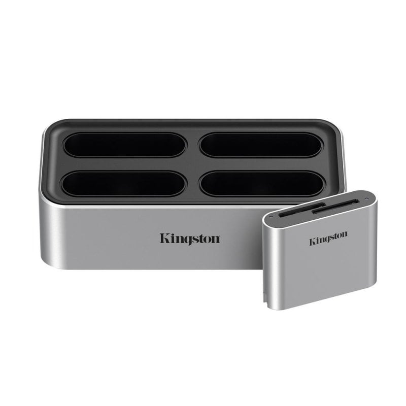 Flexibilidade total para criadores profissionais. A estação Kingston Workflow WFS-S foi concebida para gerir fluxos complexos de pós-produção, permitindo a transferência simultânea de conteúdos a partir de até quatro fontes graças aos seus quatro slots USB-C, compatíveis com leitores SD ou microSD de alta velocidade (UHS-II). Adapte os módulos às suas necessidades de cada projeto, ideal para trabalhos multicâmara, drones ou captação de áudio multicanal.