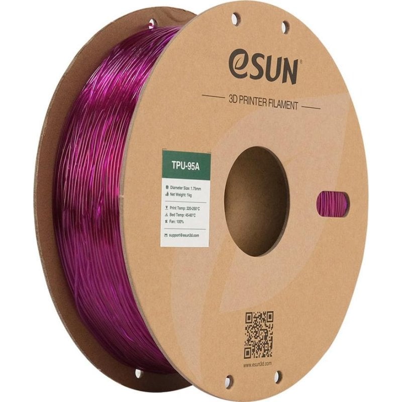 Características Filamento TPU eSUN TPU-95A175T-Z1P1 Transparente Violeta 1,75 mm Alta Tenacidade