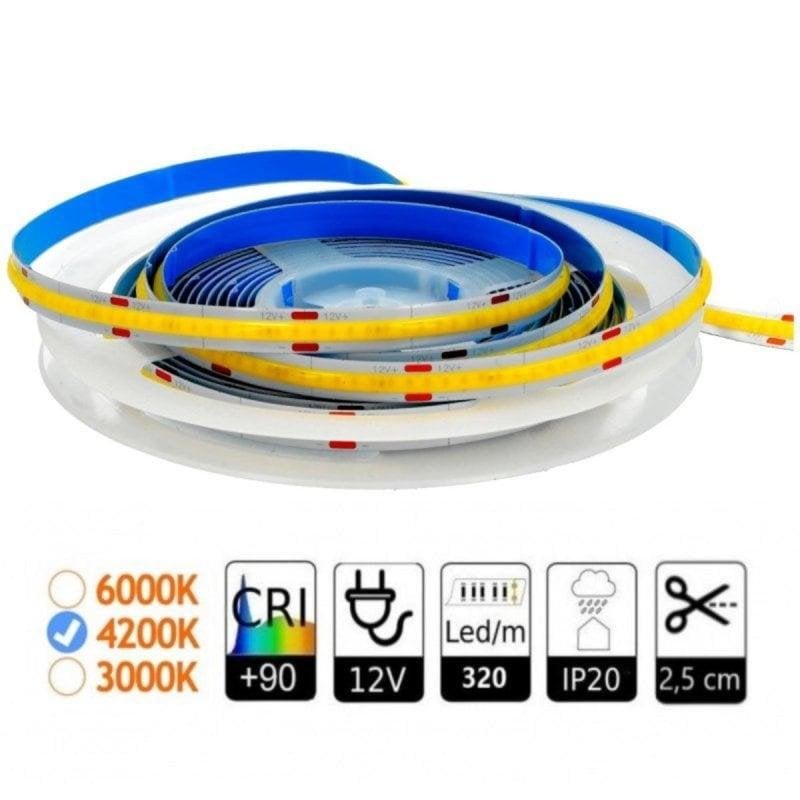 Fita LED COB Jandei 320 LED/m 5 m 4200K CRI>90 Corte 2,5 cm 10W/m 8mm