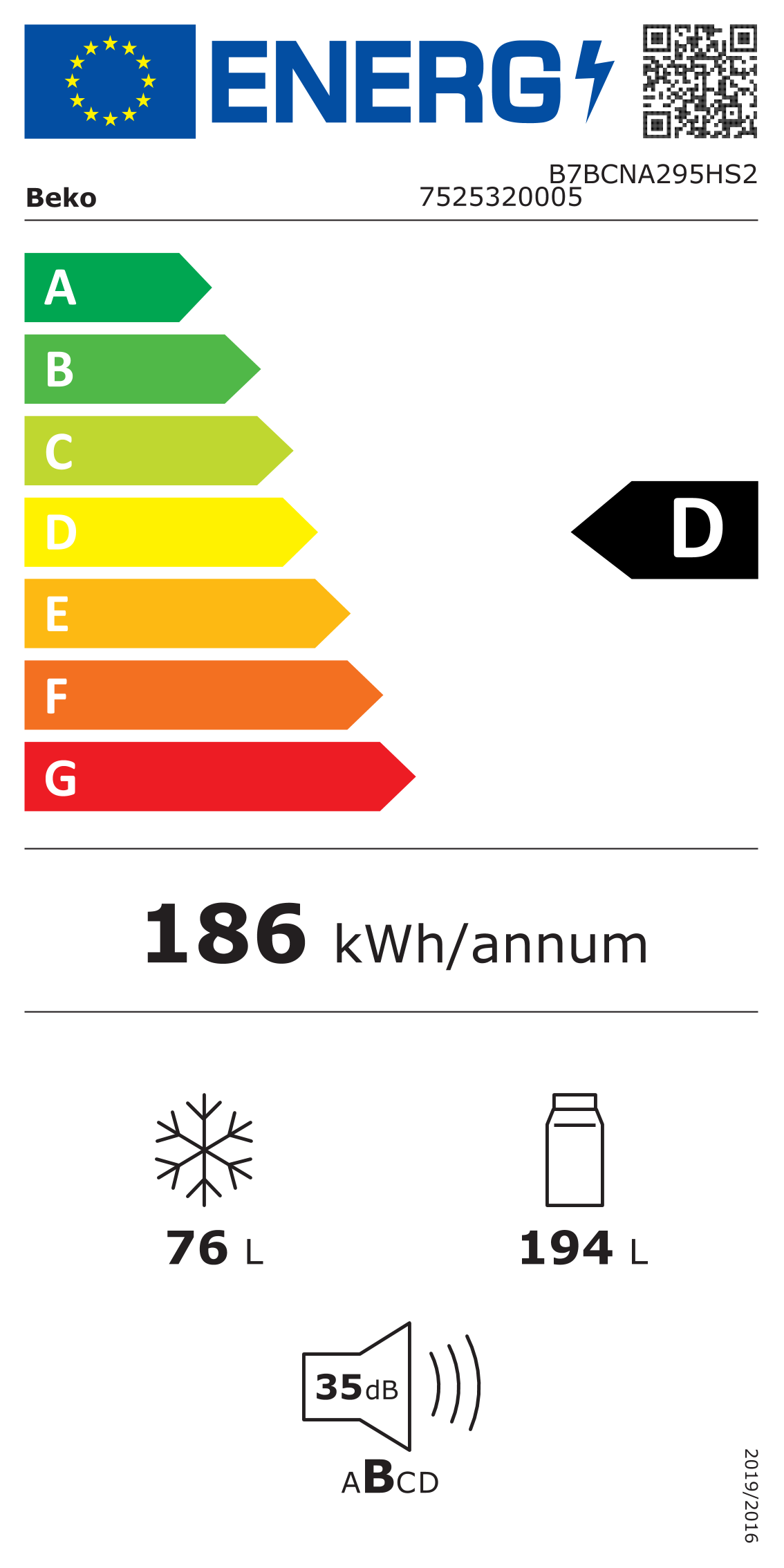 Maximize a conservação dos seus alimentos com o Beko B7BCNA295HS2, um frigorífico de duas portas eficiente e silencioso.