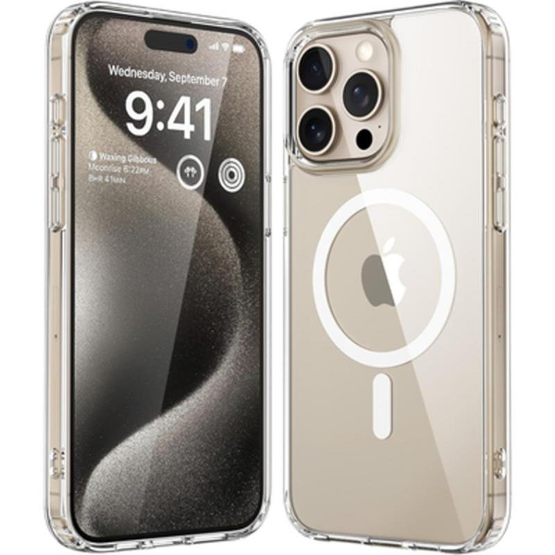 Compatibilidade e funcionalidades avançadas. Projetada especificamente para o iPhone 15 Pro, esta capa é compatível com MagSafe, permitindo carregamento sem fios rápido e uso de acessórios magnéticos. O acesso a botões, portas e câmara é preservado para uma experiência fluida.