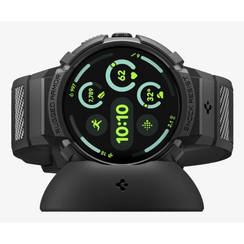 Proteja o seu Google Pixel Watch 4 com máxima segurança e estilo graças à solução Spigen em TPU preto.