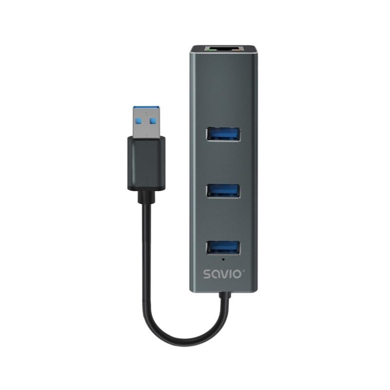 Hub Savio 3 portas 5 Gbps AK-58 com adaptador RJ-45 Ethernet