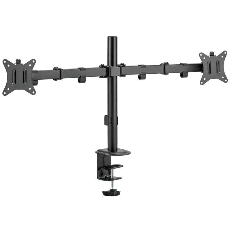 Compatibilidade universal e robustez. Compatível com VESA 75x75 mm e 100x100 mm, suporta até 9 kg por monitor, adaptando-se à maioria dos ecrãs profissionais. O sistema de montagem por abraçadeira ou furação direta oferece estabilidade máxima, mesmo em ambientes de uso intensivo.