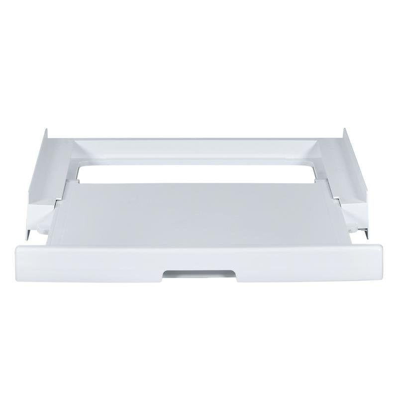 Espaço e organização otimizados. Este kit permite empilhar de forma segura a sua máquina de secar sobre a máquina de lavar, proporcionando uma solução robusta para casas onde cada centímetro conta. A prateleira deslizante torna o carregamento e descarregamento mais ergonómico e cómodo, facilitando o manuseio da roupa sem necessidade de se baixar durante o processo.