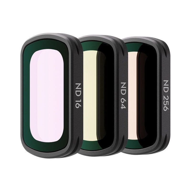 Eis os filtros ND para a DJI Pocket 3. Este kit inclui três filtros ND (ND16, ND64 e ND256) que limitam a quantidade de luz que chega ao sensor da câmara. Em dias muito ensolarados, pode ocorrer sobre-exposição. Para a reduzir sem alterar as definições (e, assim, manter a máxima qualidade de imagem), utilize os filtros ND!
