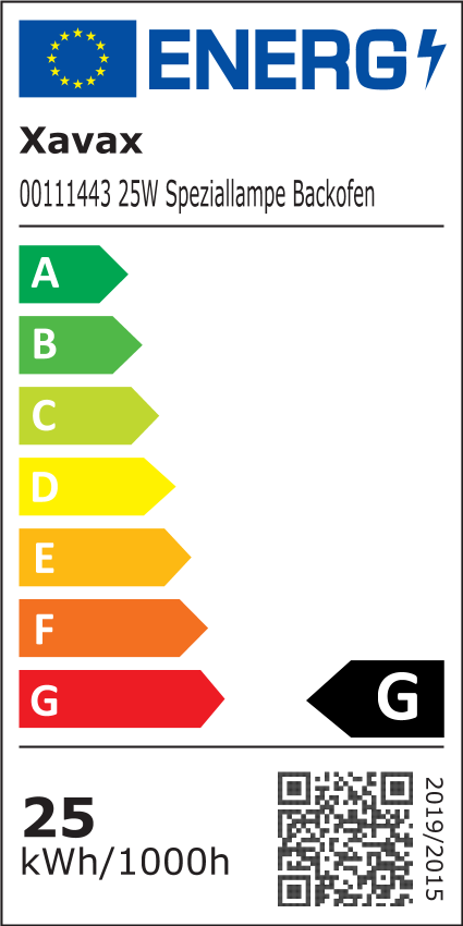 Poder luminosa e economia. Os 25 W oferecem um fluxo de 80 lm, suficiente para iluminar espaços compactos, sendo ao mesmo tempo eficiente graças à sua classe energética G.