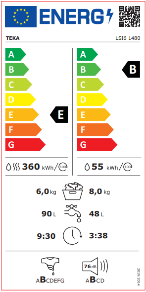 Características Lavasecadora Teka 8kg B LSI6 1480