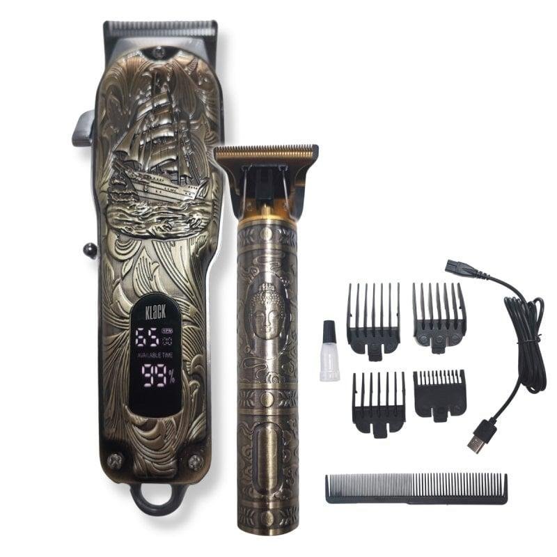 A Klack Vintage e o perfilador KBuda Vintage formam um pack profissional para cortes precisos, confortáveis e duradouros. Aproveite a autonomia de até 3h, lâmina profissional e motor potente para resultados de barbearia em casa ou em viagem.