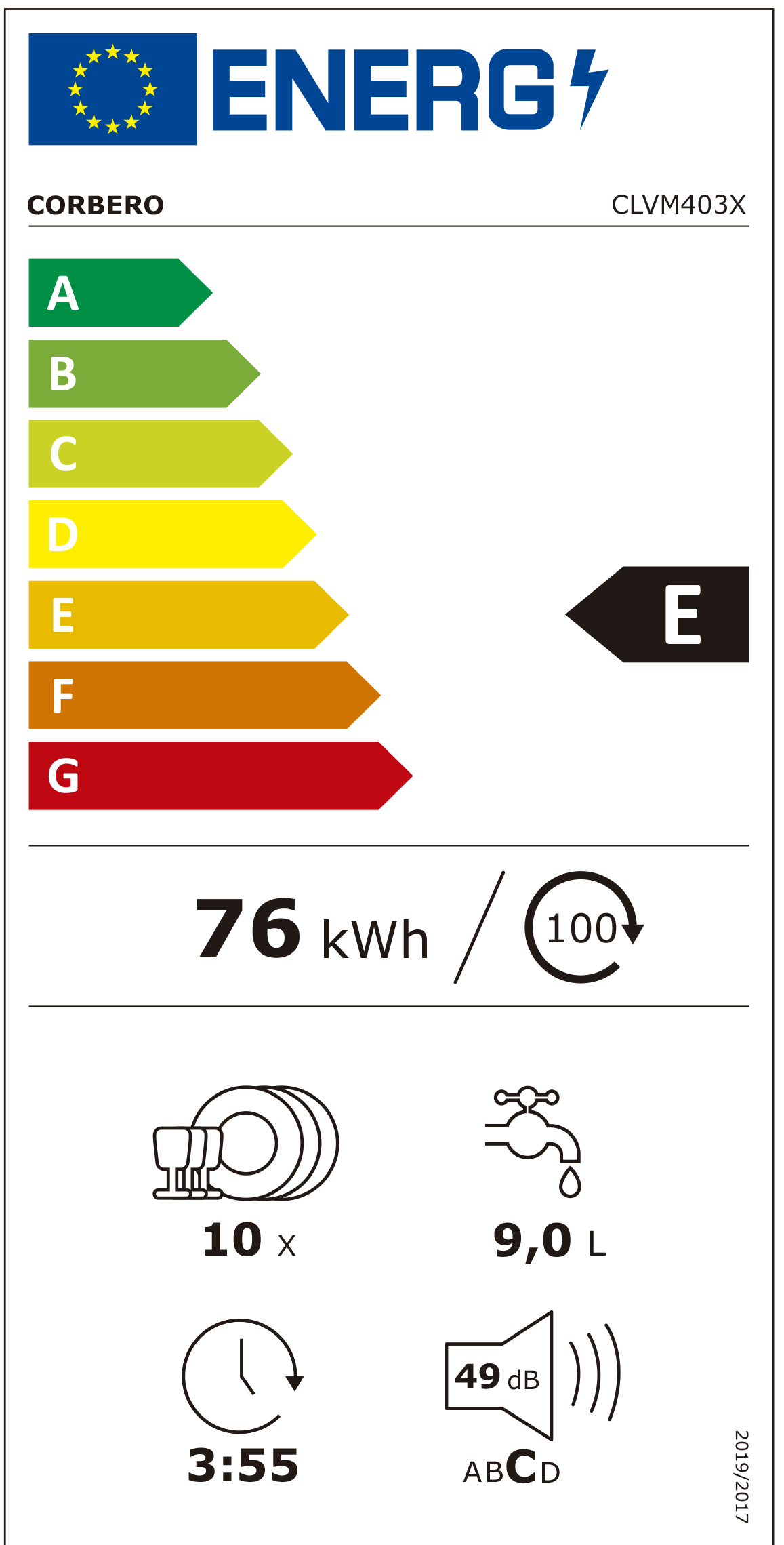 Especificações Máquina de Lavar Loiça Corbero CLVM403X
