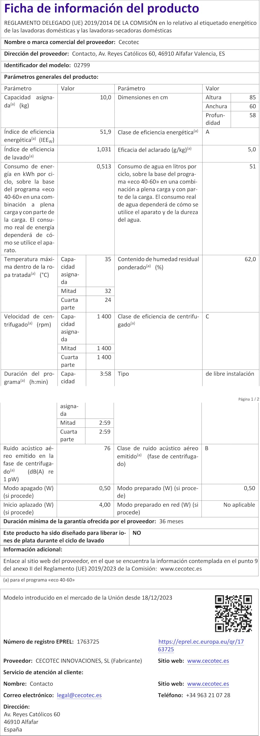FAQs - Máquina de Lavar Roupa Cecotec Bolero DressCode 10800 Inverter 10 kg 1400rpm A Branco Vapor SteamMax Display XXL