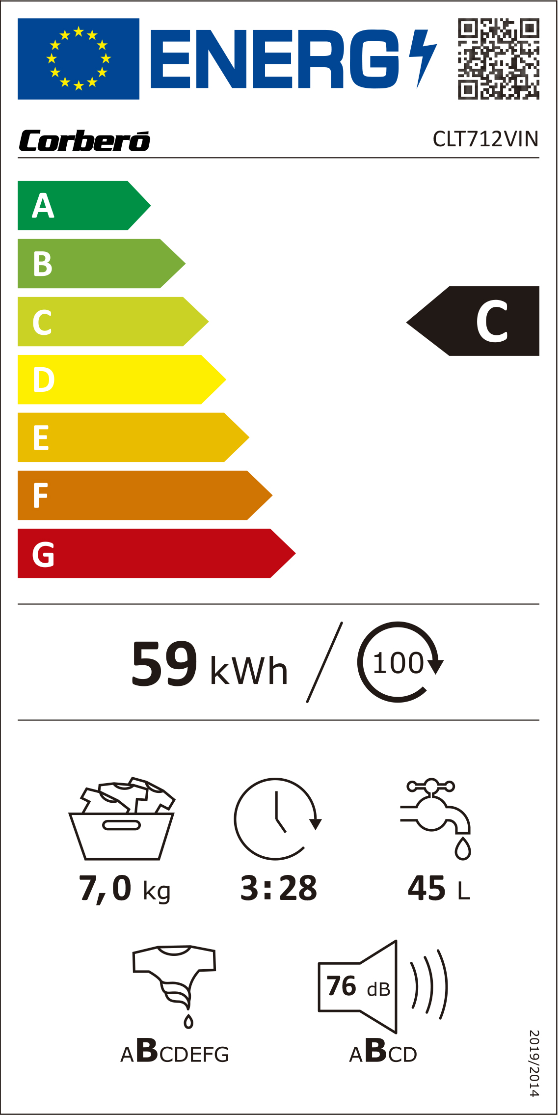 Características Máquina de Lavar Roupa Corbero CLT712VIN 7 kg 1200 rpm Classe C Branco