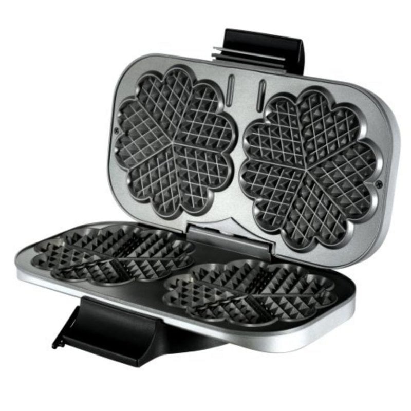 Concebida para especialistas e entusiastas da doçaria , esta máquina de waffles dupla permite preparar dois waffles em forma de coração em simultâneo, otimizando o tempo e os resultados. A sua estrutura metálica garante durabilidade e resistência a uma utilização frequente, enquanto o termóstato ajustável permite escolher o ponto de cozedura exato, obtendo sempre waffles exatamente como mais gosta: dourados e crocantes por fora e macios por dentro.