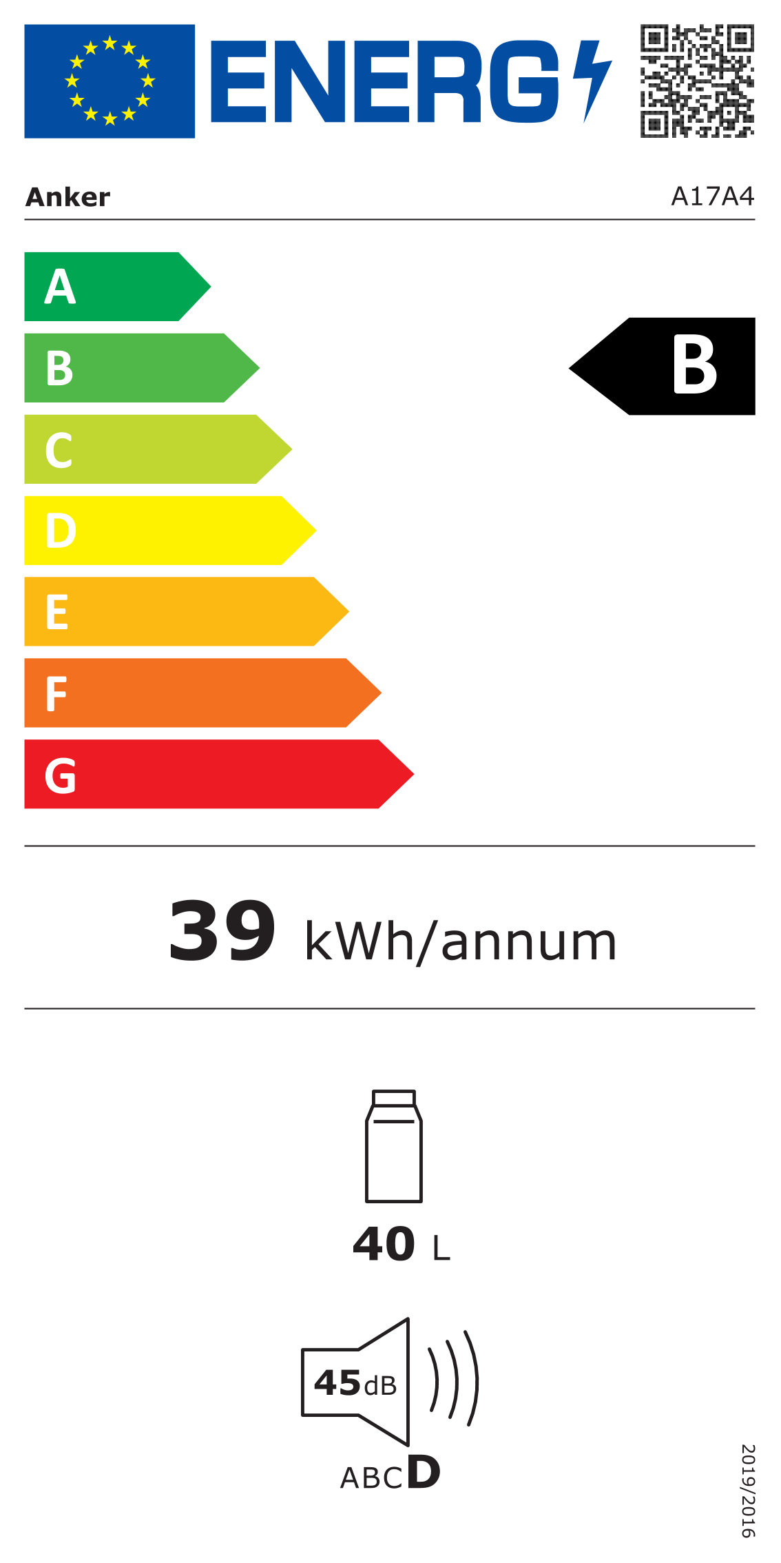 | Consumo anual | 39 kWh |