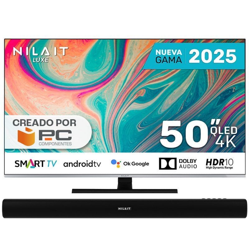 Nilait Luxe 50UC8003S 50" QLED UHD 4K Smart TV + Nilait Harmony Sound bar Barra de Som Bluetooth 2.0 30W