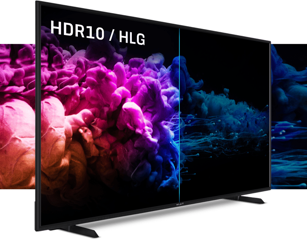 - Imagens mais detalhadas com HDR10 e HLG: aproveite ao máximo os seus filmes e séries em cores graças ao novo contraste de cores fornecido pela tecnologia High Dynamic Range e Hybrid Log Gamma. Os pretos vão escurecer e as cores mais claras vão clarear, proporcionando uma excelente experiência cinematográfica. Os seus filmes no sofá de casa como se estivesse no cinema graças a Nilait.