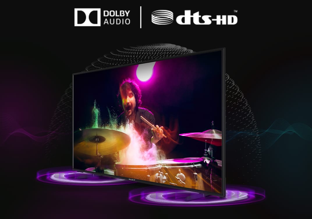 Com a sua tecnologia Dolby Audio e DTS, consegue um som mais envolvente e claro que se adapta ao conteúdo que reproduz na tela. Encha a sua sala de estar com realismo e desfrute de uma experiência de cinema.