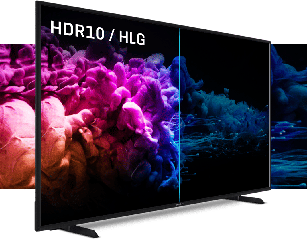- Imagens mais detalhadas com HDR10 e HLG: aproveite ao máximo os seus filmes e séries em cores graças ao novo contraste de cores fornecido pela tecnologia High Dynamic Range e Hybrid Log Gamma. Os pretos vão escurecer e as cores mais claras vão clarear, proporcionando uma excelente experiência cinematográfica. Os seus filmes no sofá de casa como se estivesse no cinema graças a Nilait.