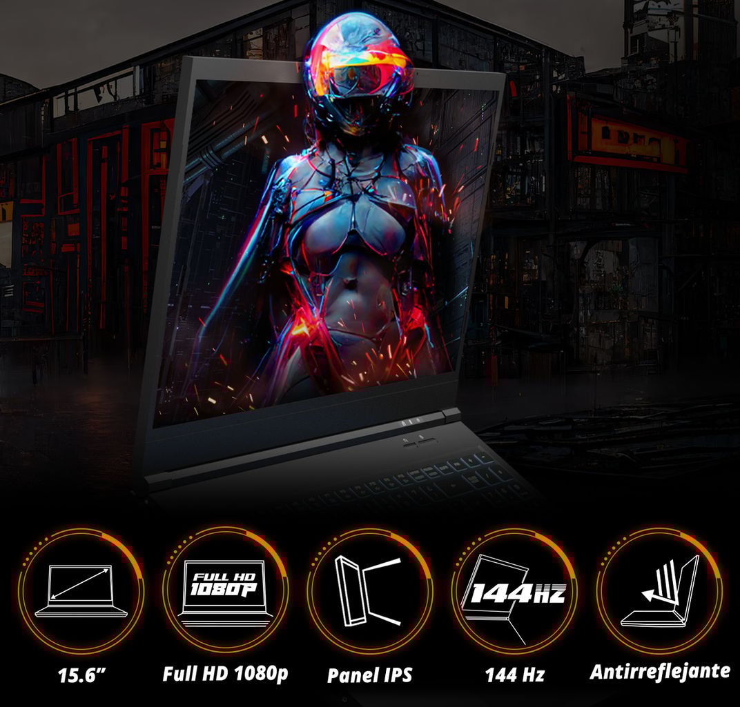 Deixe-se imergir por uma qualidade e fluidez de imagem sem precedentes graças ao Nvidia DLSS - Uma revolucionária renderização de IA, que potencia experiências visuais únicas, possíveis agora com o seu portátil PCCom. - Não perca detalhes graças à sua tela IPS FHD: O portátil possui uma tela antirreflexo IPS Full HD 1080p de 15,6", para que não perca nenhum detalhe. Este é um tamanho de tela ideal, seja em casa ou em trânsito. O seu portátil estará sempre a seu lado, onde quer que vá.