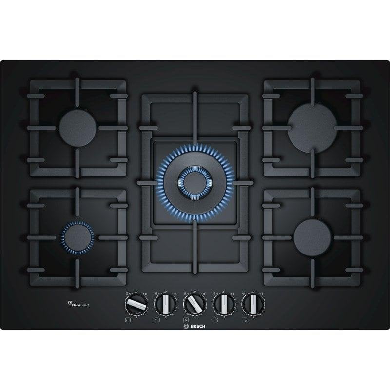 Placa Bosch PPQ7A6B90 5 zonas gás 75cm vidro preto FlameSelect