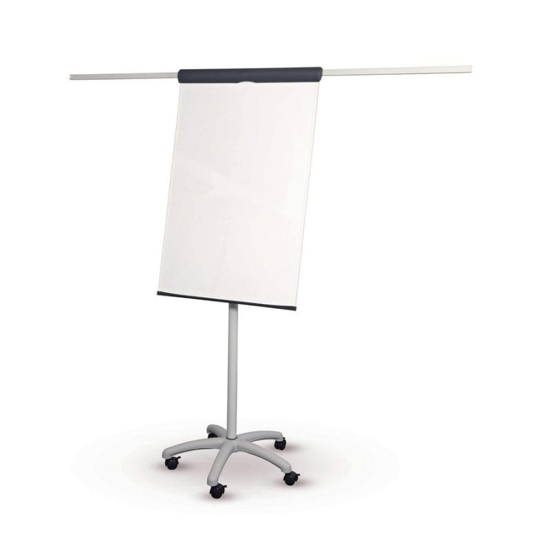 Estabilidade e mobilidade otimizadas. Este porta-cartazes independente é equipado com cinco rodas, das quatro são bloqueáveis, oferecendo uma mobilidade fácil no seu espaço de trabalho enquanto garante estabilidade perfeita quando parado.