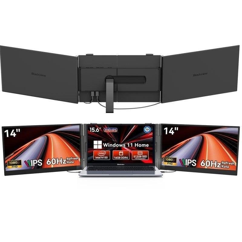 Sim, acompanha um ecrã portátil Blackview DCM6 de 14" FHD, perfeito para configurações multi-monitor, apresentações e produtividade em movimento.