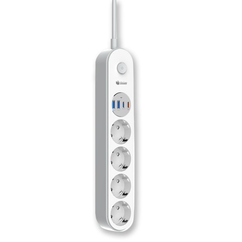 A régua de alimentação PCCOM Essential com 4 tomadas + 2 portas USB-C + 2 portas USB-A é a solução ideal para quem procura uma forma prática, segura e eficiente de carregar vários dispositivos em simultâneo. Com um design compacto e funcional, esta régua de alimentação combina potência e versatilidade, integrando portas USB-C com carregamento rápido PD até 20 W e tomadas tradicionais num único dispositivo. Seja para a sua secretária, sala de estar ou escritório, irá desfrutar de uma experiência de carregamento mais organizada, sem a necessidade de vários carregadores.
