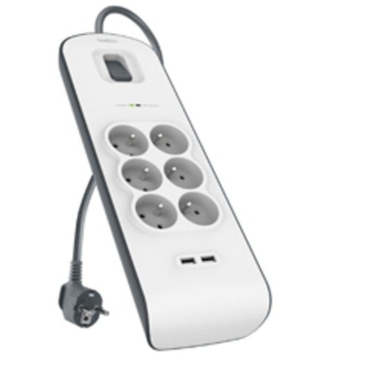 Proteja os seus equipamentos eletrónicos e carregue vários dispositivos em simultâneo com a régua de tomadas Belkin BSV604ca2m, ideal para ambientes domésticos ou de escritório que exigem segurança e versatilidade.
