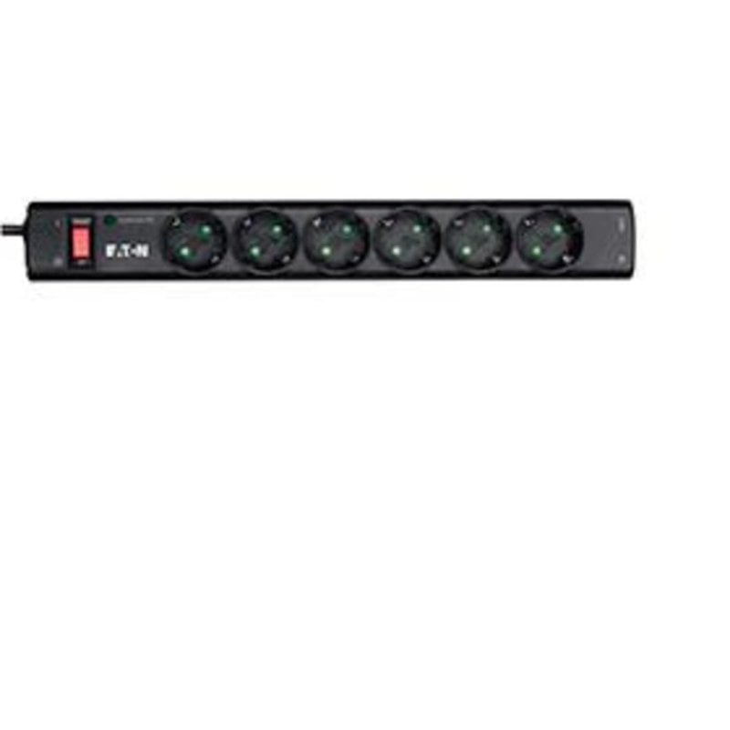 Proteja e alimente seus dispositivos com a régua Eaton PS6TD, equipada com 6 tomadas Tipo F e proteção integrada.