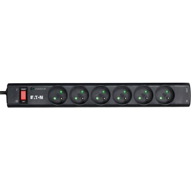 Régua de tomadas Eaton PS6TF 6 tomadas Tipo E proteção interruptor LED RJ11 1 m