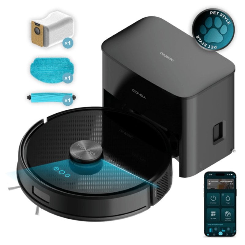 Robot Aspirador e Limpador de Chão Conga Y70 Navegação Láser 20.000 Pa Esvaziamento Automático WiFi APP Escova Animais de Estimação