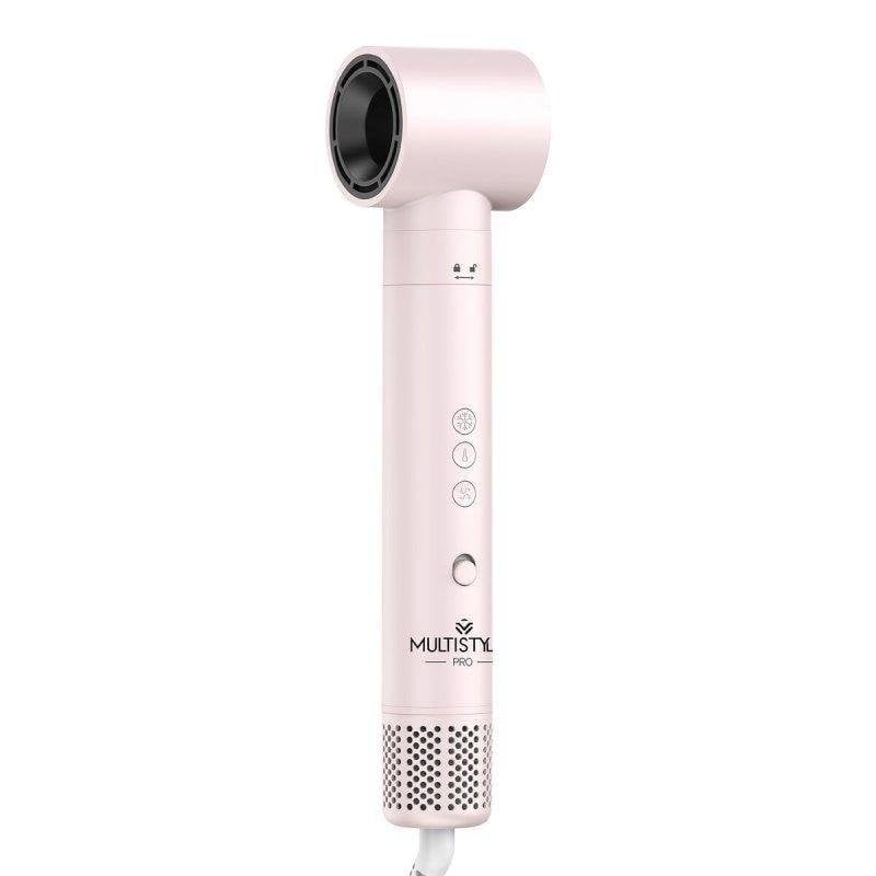 O By AGV Multistyler 6 em 1 integra tecnologia iónica para eliminar o frizz e proteger o cabelo, motor de alta potência para secagem eficiente, 6 acessórios para múltiplos estilos, função de ar frio e design ergonómico com cabo giratório. É indicado para uso profissional e doméstico.